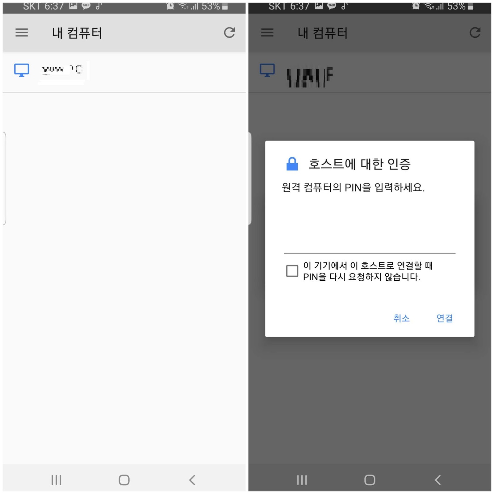 8. 내 컴퓨터 목록에 보이는 PC를 선택하고, 조금전 설정한 6자리 PIN 번호를 입력합니다.