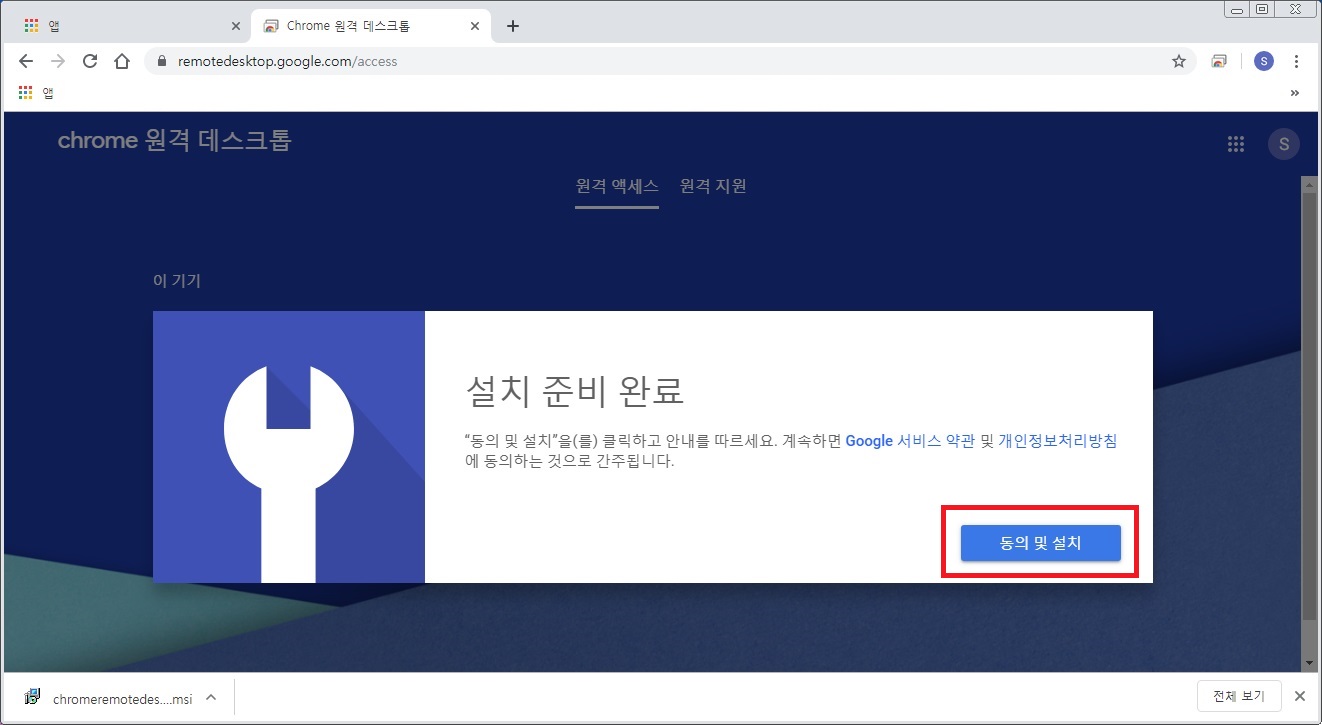 3. 스마트폰에서 PC로 접속하기 위해 PC에 원격 접속 프로그램을 설치해줍니다. 진행과정은 생략할께요.