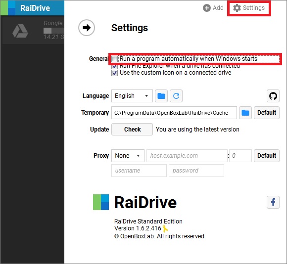 12. 참고로, 이 프로그램의 기본값은 윈도우 시작 시 자동 실행되는데, 원하지 않은 경우 Settings에서 아래와 같이 체크를 해제해 주시면 되겠습니다.