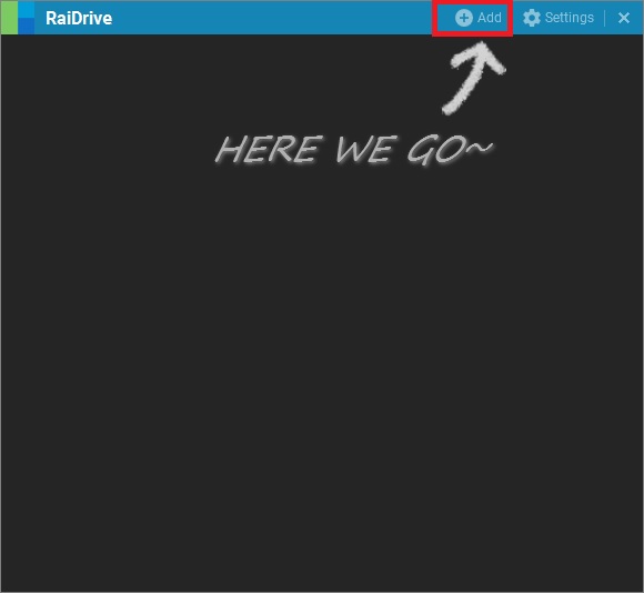 7. 바탕화면의 RaiDrive 아이콘으로 RaiDrive를 실행하고, 상단의 "Add" 버튼을 눌러줍니다.