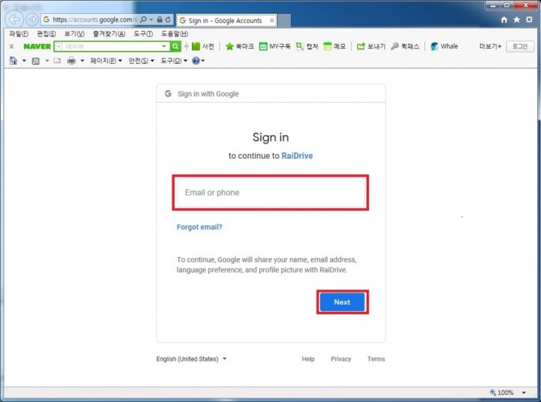 9. 이때, 인터넷 브라우저에 구글 계정 접속 탭이 생겨나는데, 구글 계정 아이디(xxxxx@gmail.com)를 입력해주세요.