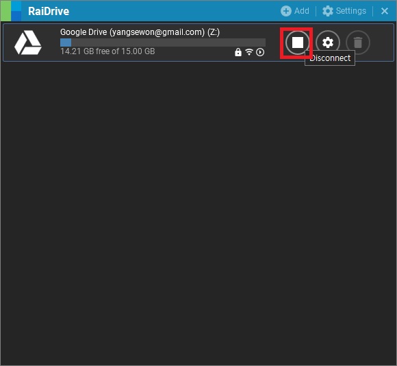 11. 드라이브 연결을 끊고 싶으면 Disconnect 를 누릅니다.