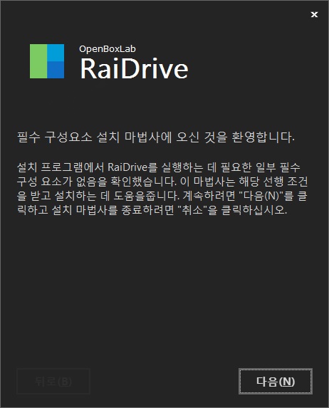 2. 다운로드 된 RaiDrive_1.6.2.416 설치 파일을 실행합니다.