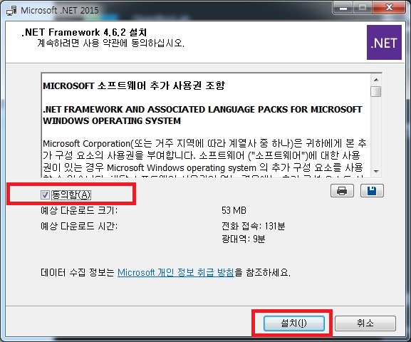 3. "동의함"에 체크해 주시고 설치 버튼을 눌러줍니다.