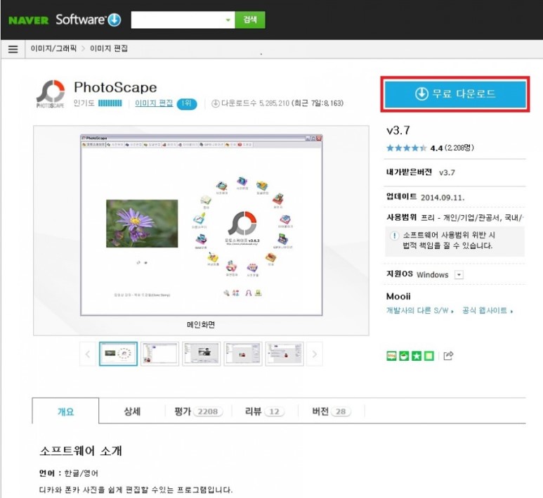 1. 네이버 소프트웨어 검색에서 아래 포토스케이프를 검색해 설치 파일을 다운로드 받습니다.