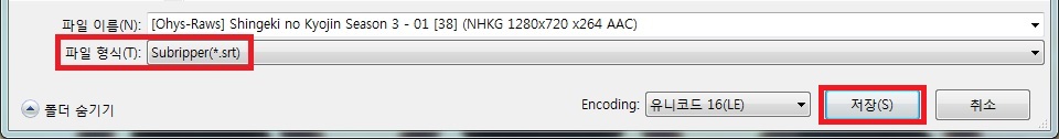 ( 인코딩은 자막 글자가 깨져 보이는 경우 아니면 손대지 마세요. )