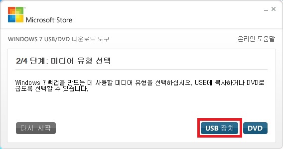 3. 2/4 단계 : USB 장치를 선택합니다.