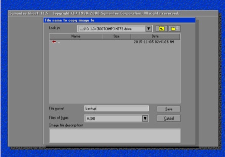 4. 백업(.gho) 이미지를 저장할 위치와 파일명을 지정해 주고 'SAVE' 클릭합니다.