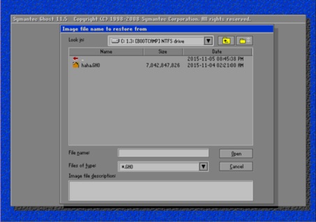 3. 백업 파일(.gho)의 위치를 찿아서 선택합니다.
